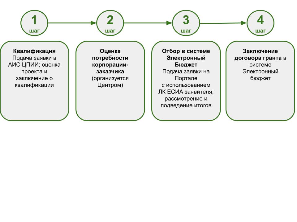 - Требования к корпорации-заказчику: Российская организация с выручкой не менее 40 млрд рублей, наличием Координационного совета в своей структуре, готовая заключить соглашение с оператором и участвовать в отборе проектов и приемке результатов